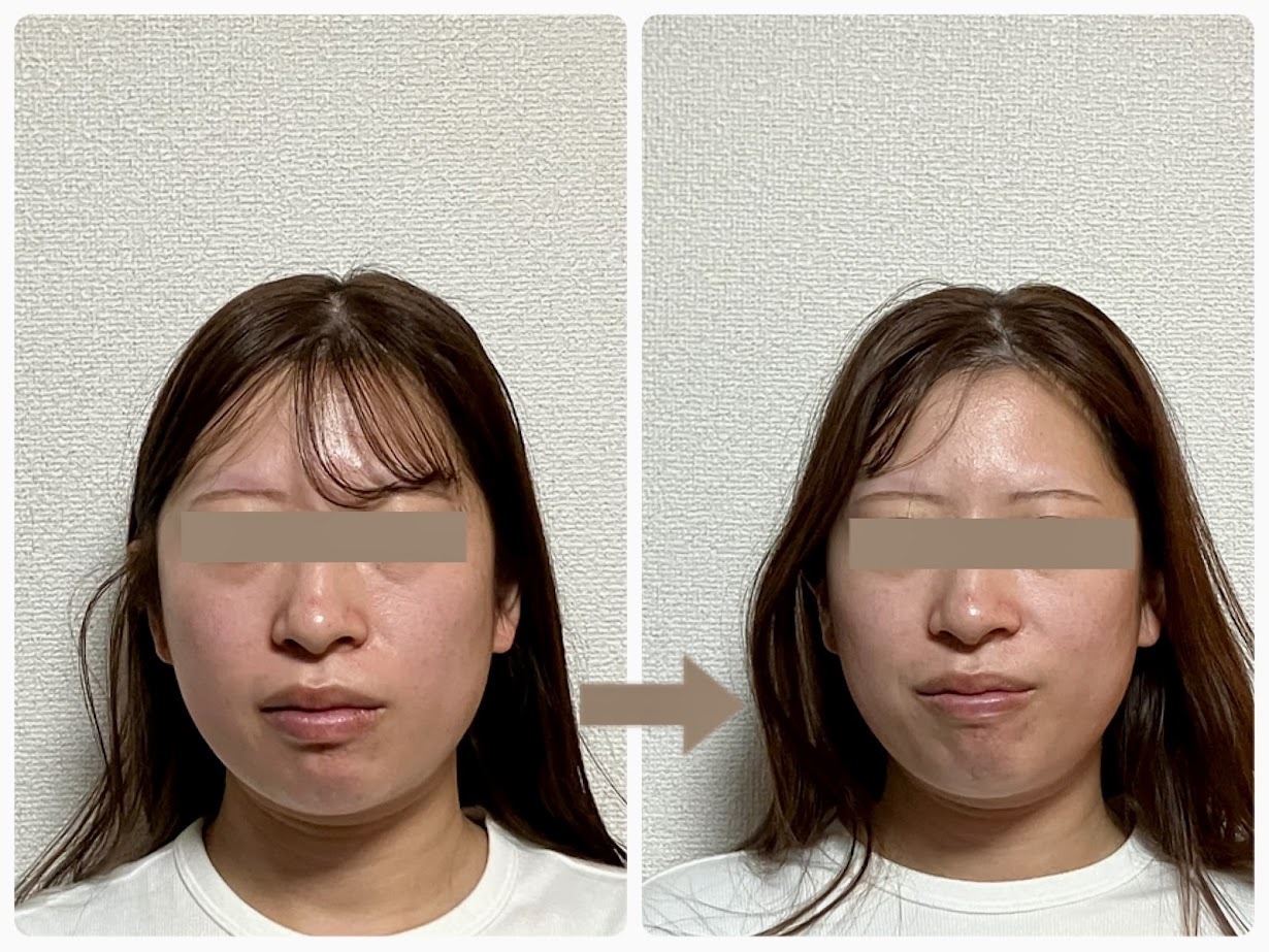 Y様は全身のたるみなどを気にされていました。片頭痛やひざ痛もあるということだったので、小顔矯正、O脚矯正を中心に全身を整えました。